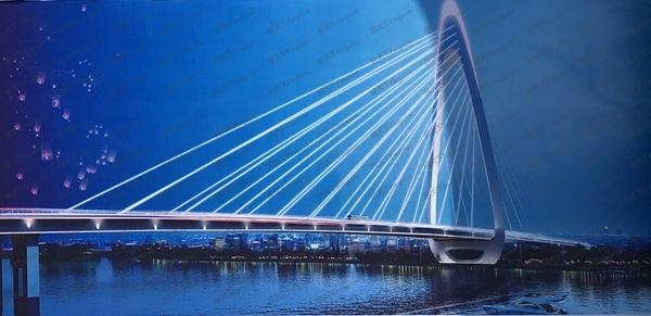 中山东路东延新津河大桥西接现有中山东路,东联中山东路东延段中阳大道。项目全长1.6公里,桥梁部分长约827米。其中425米长的主桥采用独塔双面索斜拉桥结构设计,